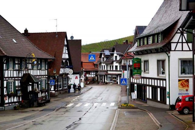 Sasbachwalden es un hermoso pueblo de unos 2.500 hab. que deja una imagen rotunda de las poblaciones que salpican los frondosos bosques germanos y estas montañas, no excesivamente altas, que se extienden hasta las estribaciones de los Alpes. Edificaciones profusamente decoradas, rayanas en lo barroco, pero tan coloridas y, sobre todo, diferentes a lo que estamos acostumbrados a ver, que nos han resultado tan llamativas como sorprendentes.