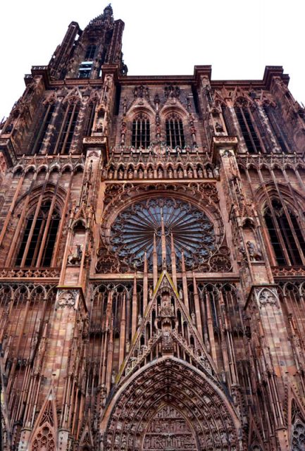 La Catedral de Notre Dame de Estrasburgo, tiene una portada realmente impresionante. La torre principal con sus 142 m de altura fue hasta el SXIX la más alta del mundo. De un estilo gótico muy pronunciado su exterior resulta mucho más espectacular que su interior. El pórtico está profusamente decorado y la calidad de sus representaciones ya de por sí satisface la visita. El interior del edificio destaca por sus enormes vidrieras, un colorido órgano del SXVIII y un original Reloj Astronómico. También es cierto que nos hemos topado con el presbiterio tapado por completo para algún tipo de espectáculo por lo que no hemos podido hacer un recorrido más completo por tan magnífico edificio.