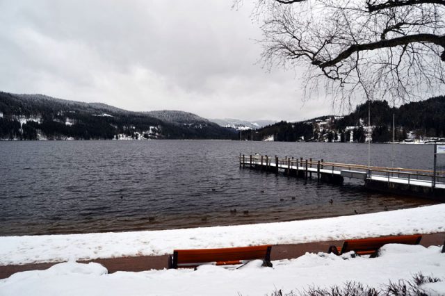 A solo unos 40 km de Friburgo, parada en Titisee-Neustadt una de las estaciones de esquí más conocidas de Alemania, además de importante ciudad balneario gracias a sus aguas termales y que acompaña un precioso lago. Es aquí, en medio de una copiosa nevada, donde hemos decidido almorzar después de dar un breve paseo por las orillas heladas del lago y como es de suponer disfrutar de lo lindo de tan singular paisaje.