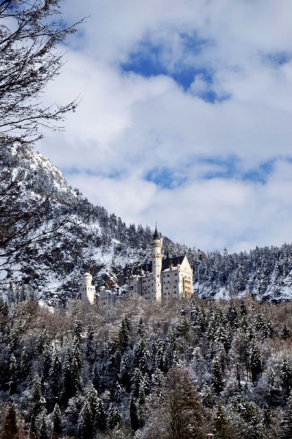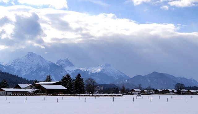 Vuelta a la carretera camino del Castillo de Luis II de Baviera en los Alpes Bávaros. No podíamos imaginar que los pocos más de 100 km que distan de Lindau a Füssen en cuyas proximidades se encuentra el castillo y otros tantos más hasta nuestro alojamiento en Augsburgo íbamos a recorrerlos rodeados por el mismo manto blanco desde que prácticamente salimos de Estrasburgo. Sí que ha llegado también tarde aquí la nieve este año pero en lo que a nosotros respecta y en especial en un día tan claro como este será un entrañable recuerdo que guardaremos para siempre.
