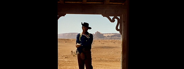 La pradera, “La pradera sin ley”, King Vidor (1955), colores amarillos que recorren el espacio transitado por los actores; el bosque, “Tambores lejanos”, Raoul Walsh (1951), los indios seminolas persiguen sistemáticamente a Gary Cooper (Capitán Quincy Wyatt); la llanura, grandes extensiones recorridas por forajidos y caravanas en las películas de John Ford; la cordillera, “Bailando con lobos”, Kevin Costner (1990), una aventura que se aproxima a la verdad de la historia que nos cuentan; o el curso fluvial, “Río sin retorno”, Otto Preminger (1954), rodado en Canadá en escenarios naturales, con un cromatismo azul y verde, sus dos líneas horizontales están marcadas por el cielo y el río. Entre todos hicieron el paisaje de las películas del oeste americano; a menudo son los verdaderos protagonistas. Monument Valley fue el escenario preferido de las películas de John Ford y, como realidad innegable, le sirvió para enmarcar las acciones. En los años 50, películas como “Raíces profundas” de George Stevens (1953) contribuyen a que lo estético ganase y que el drama se consolide dada la incorporación del cinemascope. La singularidad del paisaje en las películas del oeste es muy interesante desde una perspectiva cultural; alcanza el nivel de la pintura. Películas como “Flecha rota”, de Delmer Daves (1950), “Tambores lejanos”, de Raoul Walsh (1951), “Río sin retorno”, de Otto Preminger (1954), consiguen de los mismos una belleza con la que los espectadores de la época no contaban. Las grandes extensiones de “Río rojo”, Howard Hawks, Arthur Rosson (1948), y “Horizontes de grandeza”, William Wyler (1958), establecen distancia con las producciones que se servían de decorados estilizados utilizados por otros directores. El paso del cartón piedra pintado a los exteriores naturales les dio otra prestancia a las películas y sumó nuevas perspectivas a la hora de encuadrar y poner en escena las secuencias.