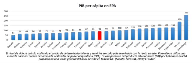 ¿Qué hace que los ciudadanos de un país dispongan de más o menos recursos, que en definitiva sean más ricos o más pobres? La respuesta es obvia: la capacidad de gasto y ahorro de los mismos. Pongamos un ejemplo práctico en nuestro entorno de la Unión Europea.