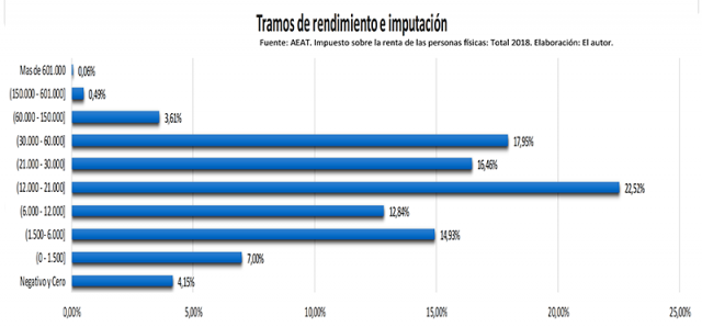 De lo más ilustrativo para el presente estudio resulta que el 61.44 % de los españoles ganan menos de 21.000 € al año y que el salario más habitual apenas si supera los 18.000 € anuales.