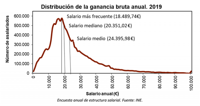 Más ajustados a la realidad prepandémica los tres gráficos anteriores resultan bastante significativos y nos dibujan con bastante claridad el panorama salarial español.