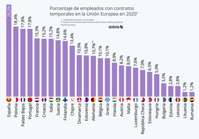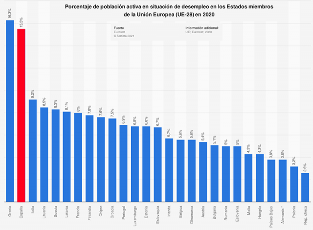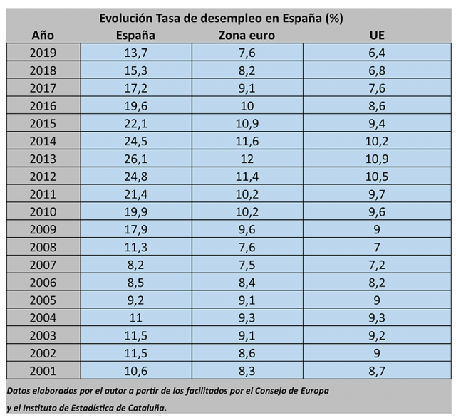 Lo que ha ido dando forma tal y como hemos repetido en alguna ocasión, a un modelo laboral intensivo de salarios bajos que conforme han ido aumentando los desequilibrios con la deriva neoliberal de las últimas décadas y la catastrófica gestión de la crisis de 2008 para las clases medias y trabajadoras, se ha ido acentuando y traído como resultado que España mantenga una de las tasas más altas de desempleo y temporalidad en la UE a lo largo de toda la serie histórica.