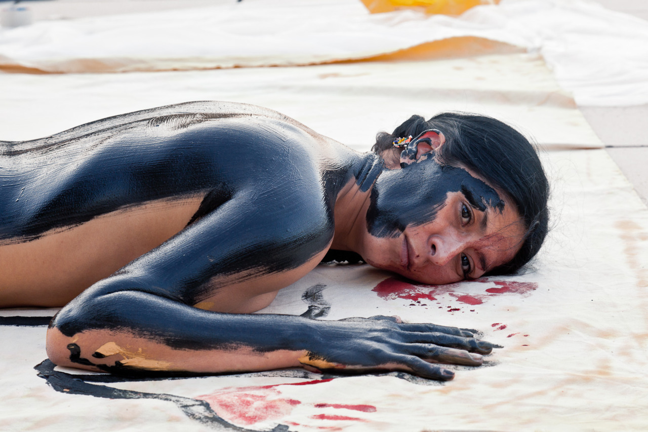 Malinche Caníbal, Performance, Erika Trejo Action Painting, Las Dos Malinches, Silvia Viñao |