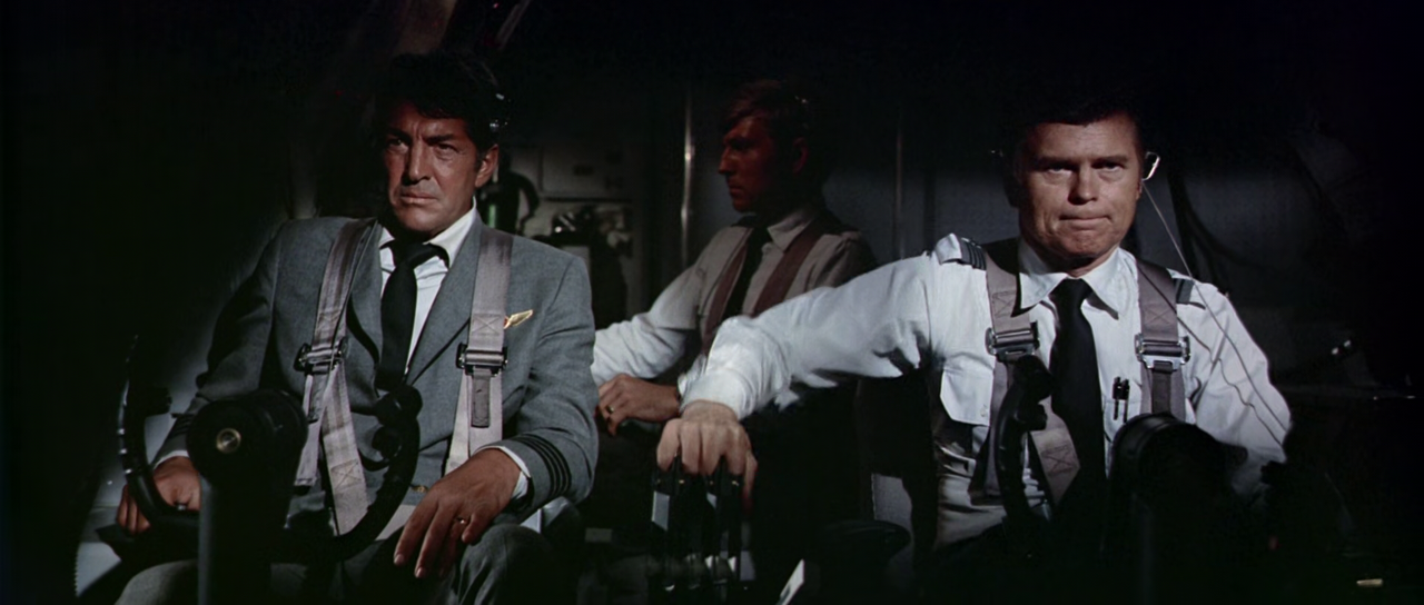 Y en cuanto al suspense, si, por su parte, ulteriores ejemplos como Aeropuerto 75 o Terremoto (pese a tener en sus filas a dos directores como Jack Smight y Mark Robson) acumulaban serios problemas para mantenerlo, la de Seaton, en cambio, ampara y defiende la tensión durante todo el metraje y confía en la eficacia de los personajes para que jamás decaiga el interés. Si no es Cine con mayúsculas conseguir que una conversación en un bar vacío (como la que mantienen Van Heflin y Maureen Stapleton), en un despacho del aeropuerto (Jean Seberg y Burt Lancaster) o en un avión que todavía está detenido y sin pasajeros (Dean Martin y Jacqueline Bisset) se conviertan en puntales fundamentales de la película y no consigamos apartar la mirada de ellos, habría que pensar muy seriamente qué lo es, entonces. Naturalmente, no pocas gracias han de serle dadas al director y guionista Seaton que, en la tradición de algunos de sus mejores trabajos, como La angustia de vivir (1954), Los héroes también lloran (1956) o Silencio de muerte (1963), desempeña una labor rigurosísima, por ejemplo con su recurrencia a los planos en pantalla partida. Técnica ésta, por cierto, que el productor Hunter había utilizado ya en su éxito de 1959, Confidencias a medianoche, y de cuyos efectos se genera, tanto por parte del mítico director de fotografía Ernest Laszlo como del montador Stuart Gilmore, un uso ingeniosísimo que sirve para enfatizar la importancia de una comunicación eficaz, sin duda uno de los grandes temas de la película. Existe también un largo plano subjetivo desde la perspectiva de la azafata que, aun hoy, resulta una labor portentosa. Por su parte, las localizaciones reales del aeropuerto y los decorados interiores están muy bien utilizados, y aunque existen muy pocas tomas en el aire durante el vuelo, en las existentes da la impresión de que se utilizaron las mejores maquetas disponibles, mientras que las tomas en tierra se filmaron con un Boeing 707 real.