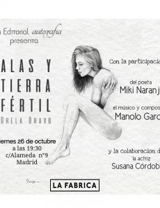 Mañana viernes 26 de octubre tendrá lugar la presentación de Alas y tierra fértil de Grela Bravo en La Fábrica (Alameda, 9 -Madrid), a las...